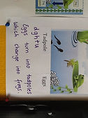 In my professional placement at a special needs school, I was working with students with multiple disabiltes and the main aim was to foster communication and independence. Under the guidance of my mentors, I familiaried myself with each of the ILPs and key learning area goals for each student. I also became familiar with the profile of each student which gave me insight into how to plan and implement lesson sequences that will lead to the outcomes of increased communication and mobility. Theme based 'big idea' learning was adopted where by the theme of growing was embedded with in all key learning areas. For guided reading a big book narrative on the story of a tadpole that changed into a frog was converted into PPT and shared daily- with sound effects, role play and enthusiastic acting to maximise meaning making. Students were moved transfered from their wheel chairs to their standing frames for the session as standing is vital for the optimum functioning of body organs. The concept of lifecyles of a frog were explored for science and for writing, students used aphabet aids and their core vocabulary of yes and no to write, with the assistance of a scribe, about the changes in a frog lifecycle. Gross motor session followed and students were transfered and assisted through a circuit that allowed for the three stages of the frog cycle to be role plaged allowing the student to practice their phsio excercises. Next the students had to move into their working chairs to a container of warm sago which simulated frog eggs for their sensory play session and for practicing writing the letter of the week. The sensory experience was continued with tasting and eating of sago custard. The letters R and T were learnt using art, craft materials that provided sensory learning experiences all within the theme of growing. Care was taken to include plenty of opportunites to grasp- pouring jug handle, gluestick, pva bottle, spoon. Grasping is the foundation skill of independence- which will later lead to grasping a fork, toothbrush, a handle to sit up and stand up. Every learning activity ensured that each student was treated with respect as it was assumed that their silence and difficulty with speech was not a reflection of their capacity to understand concepts or their ability to learn.